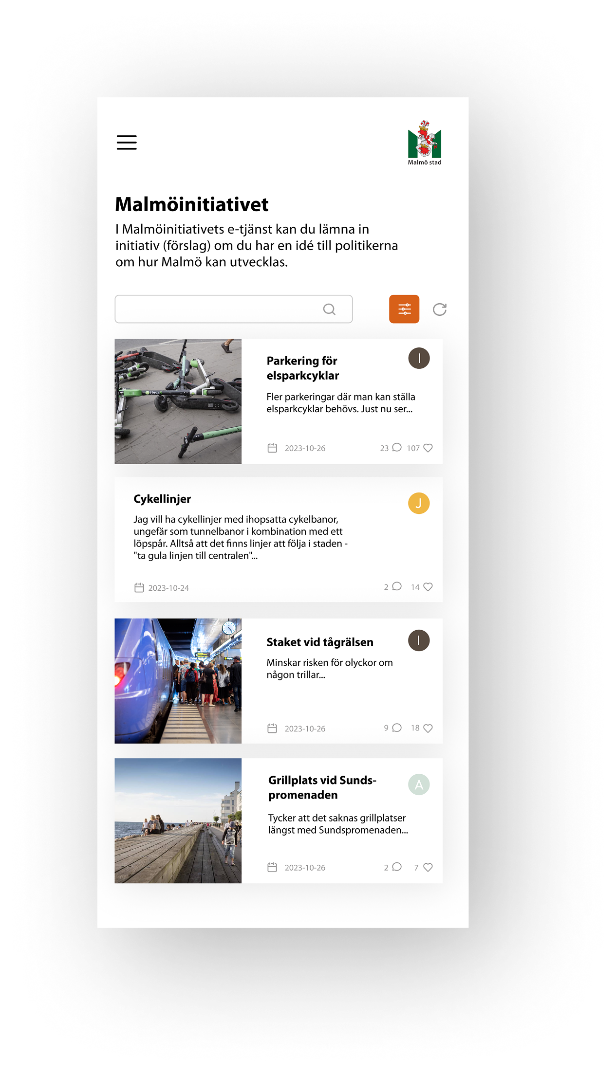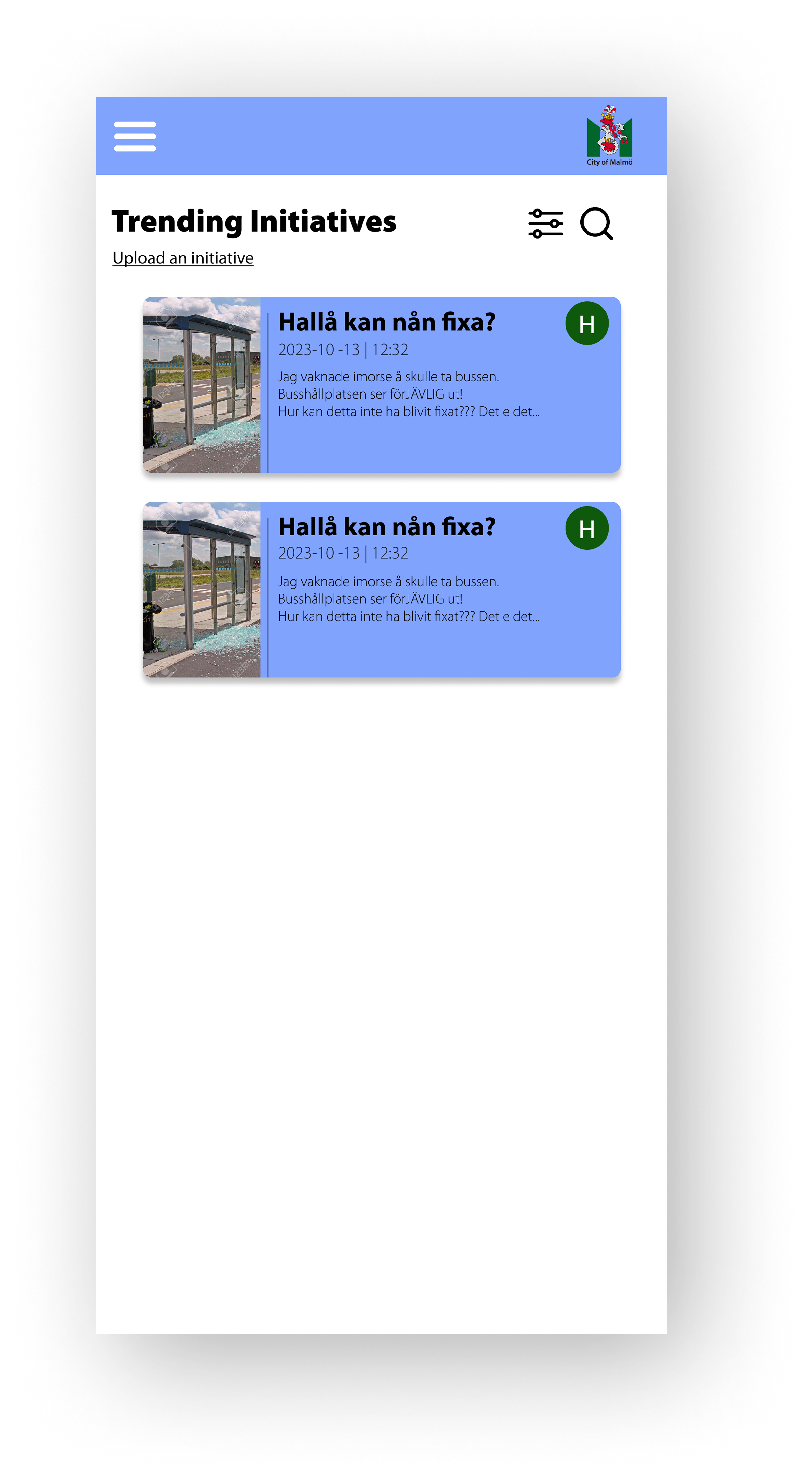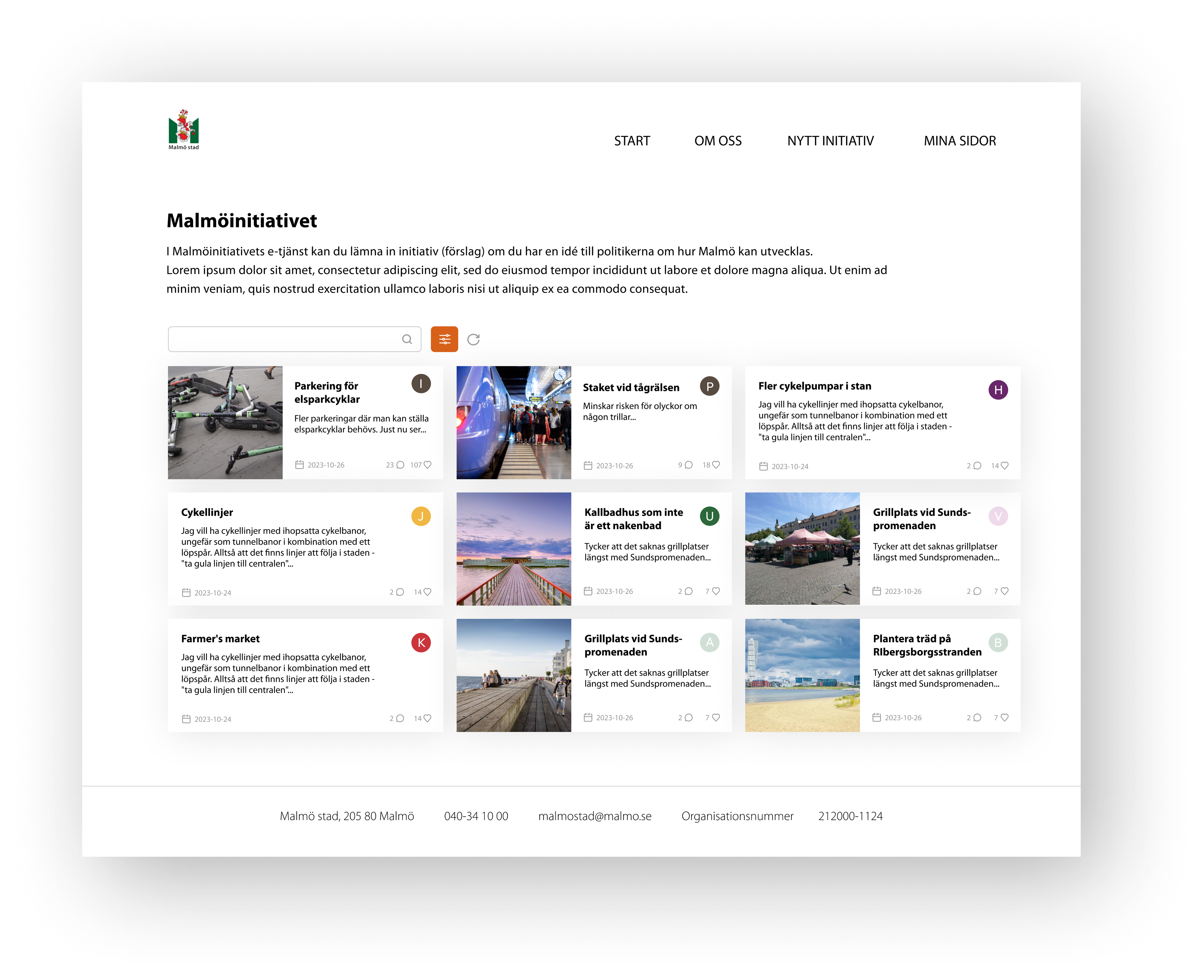 The City of Malmö has an established visual identity guideline to ensure consistent branding across all channels and contexts. We followed this guideline and used the official colours, fonts, and logos to make sure the platform has a recognizable look and feel for users.